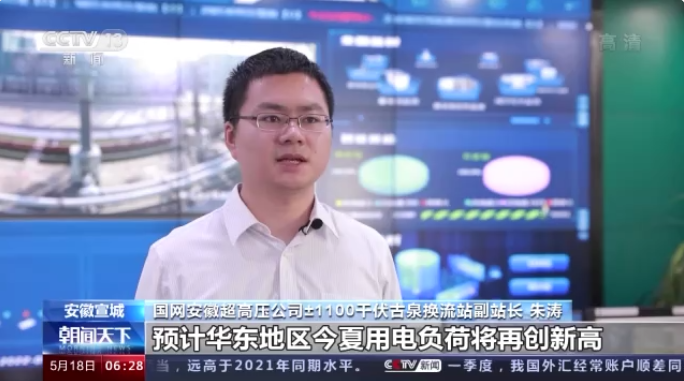 國(guó)網(wǎng)安徽超高壓公司±1100千伏古泉換流站副站長(zhǎng) 朱濤:預(yù)計(jì)華東地區(qū)今夏用電負(fù)荷將再創(chuàng)新高,此次檢修,將為高峰時(shí)段古泉站安全可靠供電提供堅(jiān)強(qiáng)的技術(shù)保障。