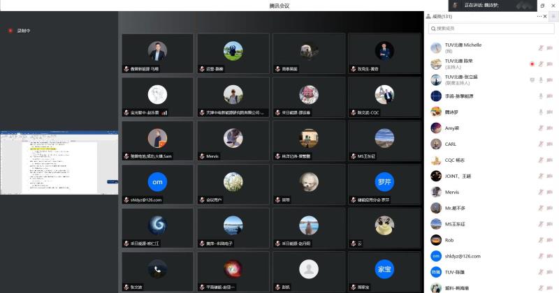 來自中國化學(xué)與物理電源行業(yè)協(xié)會(huì)儲(chǔ)能應(yīng)用分會(huì)、中國科學(xué)院電工研究所、TüV北德、平高集團(tuán)儲(chǔ)能科技有限公司、華自科技股份有限公司、北京天誠同創(chuàng)電氣有限公司、華能天成融資租賃有限公司、長沙勤凱智能科技有限公司、中創(chuàng)新航科技股份有限公司、西安奇點(diǎn)能源技術(shù)有限公司、寧夏恒為電力工程設(shè)計(jì)有限公司、上海采日能源科技有限公司、杭州平旦科技有限公司、河北興源工程建設(shè)監(jiān)理有限公司、新風(fēng)光電子科技股份有限公司、比亞迪汽車工業(yè)有限公司、國網(wǎng)江西省電力有限公司供電服務(wù)管理中心、浙江艾羅網(wǎng)絡(luò)能源技術(shù)股份有限公司、福建星云電子股份有限公司、中國質(zhì)量認(rèn)證中心廣州分中心、上海派能能源科技股份有限公司、科華數(shù)據(jù)股份有限公司、易事特集團(tuán)(河南)有限公司、雙登集團(tuán)有限公司、北京英博電氣股份有限公司、浙江萬里揚(yáng)能源科技股份有限公司、湖北億偉動(dòng)力有限公司、國網(wǎng)浙江綜合能源服務(wù)有限公司、西安高壓電器研究院有限責(zé)任公司、天津瑞能電氣有限公司、上海電氣國軒新能源科技有限公司、捷遠(yuǎn)儲(chǔ)能科技(山東)有限公司、祥博傳熱科技股份有限公司、哲弗智能系統(tǒng)(上海)有限公司、廣東電網(wǎng)能源投資有限公司、西安奇點(diǎn)能源技術(shù)有限公司、深圳市馳普科達(dá)科技有限公司、上海蔚來汽車有限公司、中節(jié)能太陽能科技有限公司、陜西延長石油售電有限公司、北京寶光智中能源科技有限公司、廣州智光儲(chǔ)能科技有限公司、西安愛科賽博電氣股份有限公司、河南輝煌科技股份有限公司、成都特隆美儲(chǔ)能技術(shù)有限公司 、天津力神電池股份有限公司、廣東新會(huì)中集特種運(yùn)輸設(shè)備有限公司、江蘇林洋億緯儲(chǔ)能科技有限公司、通標(biāo)標(biāo)準(zhǔn)技術(shù)服務(wù)有限公司(SGS)、浙江高泰昊能科技有限公司、深圳市科陸電子科技股份有限公司、國網(wǎng)新疆電力有限公司吐魯番供電公司、美克生能源、長興太湖能谷科技有限公司、傲普(上海)新能源有限公司、中國石化青島安全工程研究院有限公司、中電科能源有限公司檢測(cè)中心、天津中電新能源研究院有限公司、內(nèi)蒙古電力公司電力科學(xué)研究院、浙江一舟電子科技股份有限公司、廣東天樞新能源科技有限公司、江蘇科曜能源科技有限公司、許昌許繼電科儲(chǔ)能技術(shù)有限公司、國家電投集團(tuán)科學(xué)技術(shù)研究院有限公司、東營昆宇電源科技有限公司、中國能源建設(shè)集團(tuán)廣西電力設(shè)計(jì)研究院有限公司、迅捷能源(武漢)有限公司、深圳市健網(wǎng)科技有限公司、西安新艾電氣技術(shù)有限公司等七十多家相關(guān)單位,共計(jì)140余人參加了本次線上會(huì)議。