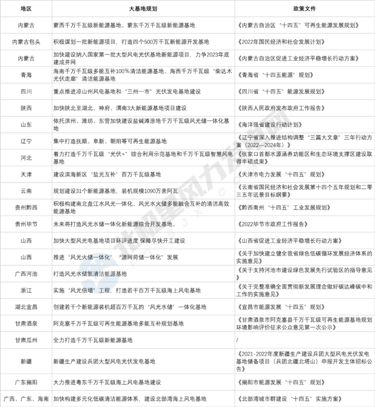 2022年2月,國家發(fā)改委、國家能源局印發(fā)《以沙漠、戈壁、荒漠地區(qū)為重點(diǎn)的大型風(fēng)電光伏基地規(guī)劃布局方案》,為風(fēng)光大基地建設(shè)規(guī)劃出了明確的路線圖。