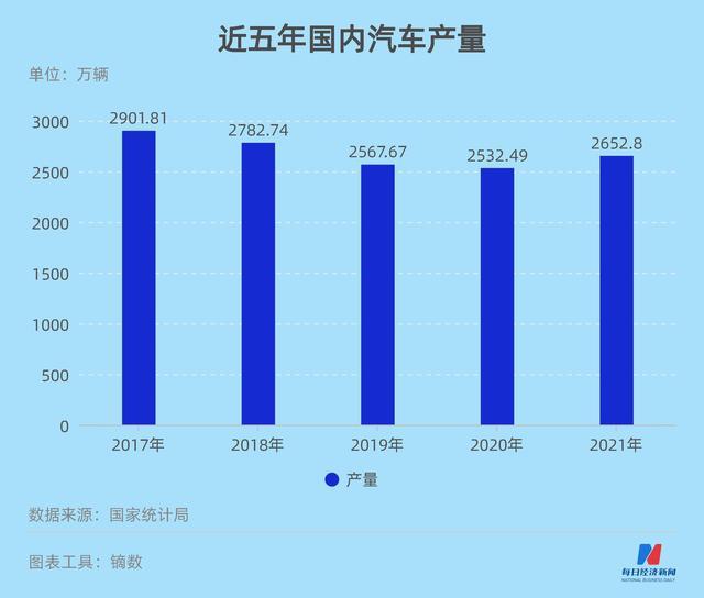 另一方面,即使排除疫情的影響,近幾年國(guó)內(nèi)新車產(chǎn)量增速也已經(jīng)放緩。據(jù)國(guó)家統(tǒng)計(jì)局?jǐn)?shù)據(jù),國(guó)內(nèi)汽車產(chǎn)量在2017年到達(dá)頂峰(2901.81萬輛),隨后開始下滑,在2021年有所反彈,約2652.80萬輛。