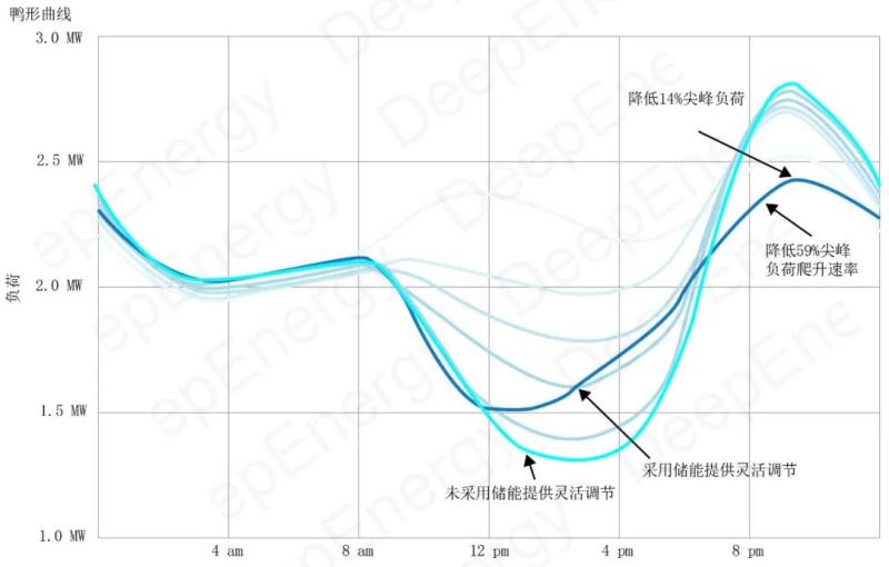 高比例VRE的多樣性和不確定性重塑了電網(wǎng)負(fù)荷曲線。當(dāng)僅僅是光伏發(fā)電的比例很高時,負(fù)荷曲線變成了“鴨形曲線”,“鴨形曲線”是加利福尼亞電網(wǎng)的最顯著特征。該曲線的典型特征是需要電網(wǎng)中的其他資源來提供很高的調(diào)節(jié)能力。儲能等靈活性技術(shù)可以滿足這些要求并平滑“鴨形曲線”。能夠激勵儲能推廣和應(yīng)用的產(chǎn)品可有助于平滑“鴨形曲線”。