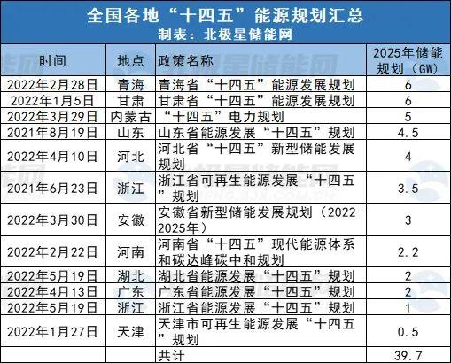 據(jù)北極星統(tǒng)計(jì),截止到目前共有湖北、浙江、廣東、安徽、河北、內(nèi)蒙古等12個(gè)省市明確提出儲(chǔ)能規(guī)劃,到2025年新型儲(chǔ)能裝機(jī)共計(jì)39.7GW。其中青海、甘肅儲(chǔ)能規(guī)模最大,2025年新型儲(chǔ)能預(yù)計(jì)裝機(jī)6GW。