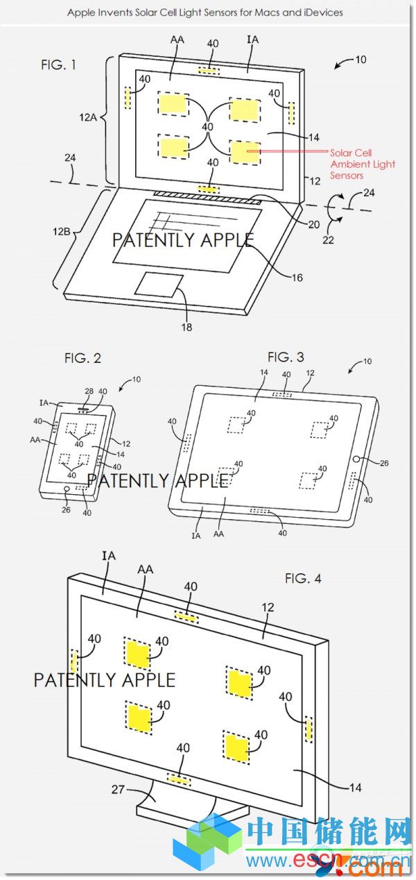 中國儲能網(wǎng)訊:美國專利商標局本周四公布了一項蘋果提交的專利申請,這項專利涉及到的是一種全新的太陽能電池技術(shù)。根據(jù)專利文件的描述,未來的 iPhone、iPad、iWatch、Mac,又或者是電視機甚至是交通工具都可以整合蘋果新發(fā)明的太陽能電池環(huán)境光傳感器,并且能夠從中獲得一天的工作電源動力。