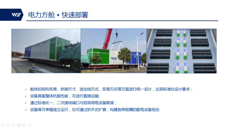 在新型電力負(fù)荷領(lǐng)域,本次推介的電力方艙基于“標(biāo)準(zhǔn)化設(shè)計、工廠化加工、裝配式安裝”的核心理念,具有設(shè)備通用性強(qiáng)、布局靈活、安裝便捷、建設(shè)高效、運(yùn)維簡單等特點(diǎn),領(lǐng)跑配電設(shè)備發(fā)展新形態(tài),為用戶提供可靠的電力供應(yīng),可廣泛應(yīng)用于電網(wǎng)、數(shù)據(jù)中心、新能源開發(fā)、工礦企業(yè)、軌道交通、海洋開發(fā)、醫(yī)院醫(yī)療、商業(yè)住宅等場景。