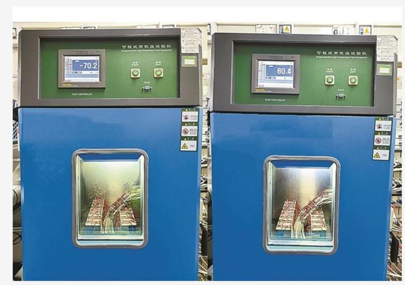 新型電池高低溫性能測(cè)試。左為-70℃測(cè)試,右為80℃測(cè)試。 (深圳先進(jìn)院供圖)