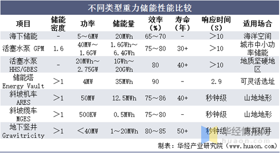 從各種重力儲(chǔ)能性能比較上來看,水介質(zhì)型重力儲(chǔ)能系統(tǒng)在功率和儲(chǔ)能容量方面不及傳統(tǒng)的抽水蓄能,但響應(yīng)時(shí)間短、選址更靈活,海下儲(chǔ)能系統(tǒng)可以合理利用海洋空間,活塞水泵系統(tǒng)可以為城市提供儲(chǔ)能服務(wù),儲(chǔ)能成本和效率也與抽水蓄能相當(dāng)。