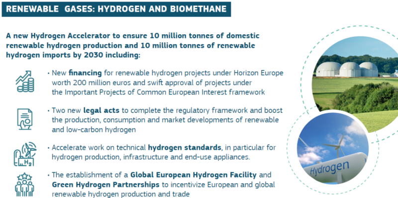 5月18日,為了擺脫對俄羅斯的化石燃料依賴并加速綠色能源轉型,歐盟委員會正式公布了 “REpowerEU” 能源轉型行動方案。在氫能方面,歐盟計劃到2030年可再生氫產量達到1000萬噸,再生氫進口量達到1000萬噸。