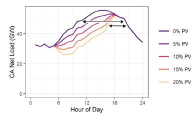 圖8 太陽能發(fā)電設(shè)施部署的增加表明凈負(fù)載峰值的持續(xù)時間縮短