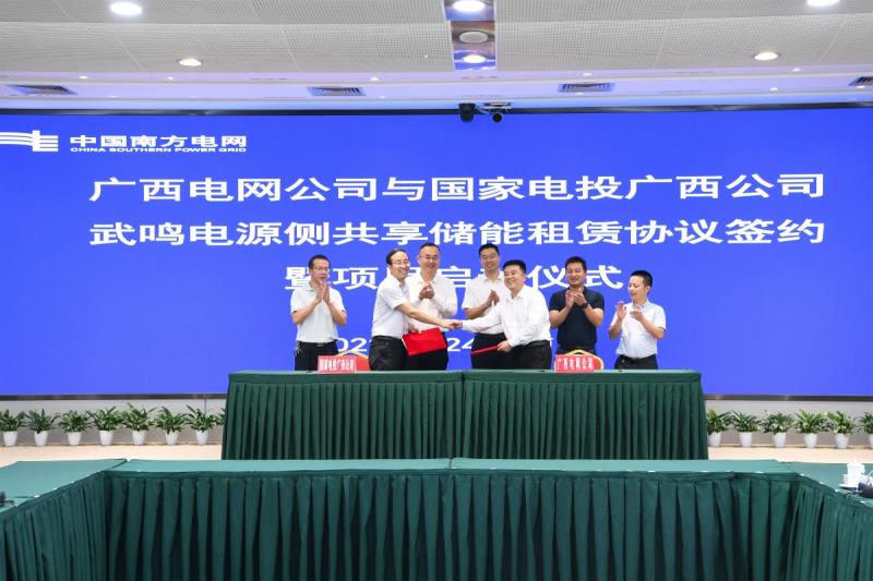 中國(guó)儲(chǔ)能網(wǎng)訊:5月24日,國(guó)家電投集團(tuán)廣西公司(以下簡(jiǎn)稱(chēng)“公司”)與廣西電網(wǎng)公司(以下簡(jiǎn)稱(chēng)“廣西電網(wǎng)”)簽訂南寧武鳴共享儲(chǔ)能電站租賃協(xié)議,廣西電網(wǎng)總會(huì)計(jì)師王永斌、公司副總經(jīng)理沈才山出席簽訂儀式并致辭,自治區(qū)發(fā)改委、南方能監(jiān)局廣西辦有關(guān)領(lǐng)導(dǎo)參加儀式。