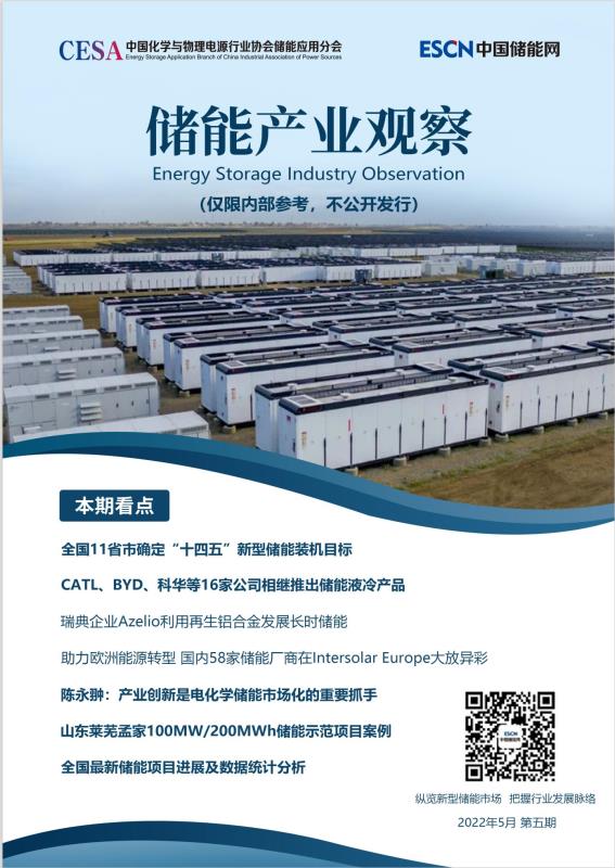 《儲(chǔ)能產(chǎn)業(yè)觀察》為電子版刊物,不對(duì)外公開發(fā)行,主要從業(yè)界關(guān)心的政策、標(biāo)準(zhǔn)、新型儲(chǔ)能技術(shù)、企業(yè)動(dòng)態(tài)、項(xiàng)目統(tǒng)計(jì)、國(guó)際趨勢(shì)、產(chǎn)業(yè)觀察、典型應(yīng)用案例、主要活動(dòng)等層面發(fā)布信息,每月1期,目前僅面向協(xié)會(huì)會(huì)員單位和戰(zhàn)略合作單位定向發(fā)行。