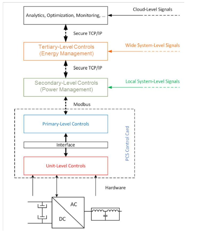 由于它們以較慢的循環(huán)時間運行,三級控制依靠較低的二級和一級控制來保證系統(tǒng)的穩(wěn)定性和安全性,并在可行的情況下啟動其根據(jù)能源管理策略計算的設(shè)定點。可以說的大一點,在滿足系統(tǒng)安全性的前提下,是否可以平滑接入電力市場并獲利是系統(tǒng)解決方案商的評價關(guān)鍵。