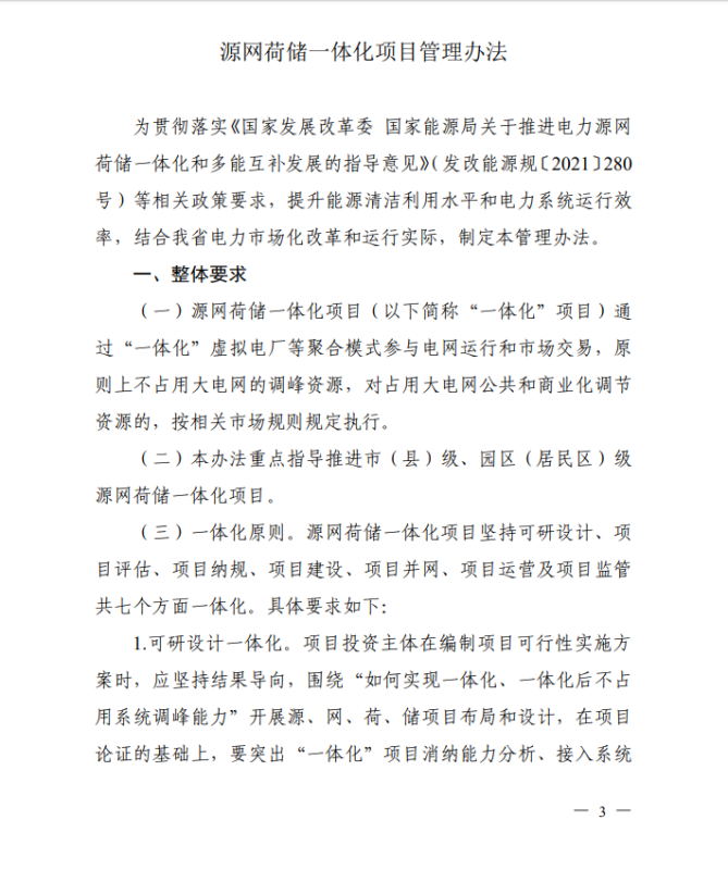 中國儲能網(wǎng)訊:為貫徹落實《國家發(fā)展改革委 國家能源局關(guān)于推進電力源網(wǎng) 荷儲一體化和多能互補發(fā)展的指導(dǎo)意見》(發(fā)改能源規(guī)〔2021〕280 號)等相關(guān)政策要求,提升能源清潔利用水平和電力系統(tǒng)運行效 率,結(jié)合我省電力市場化改革和運行實際,制定源網(wǎng)荷儲一體化項目管理辦法。