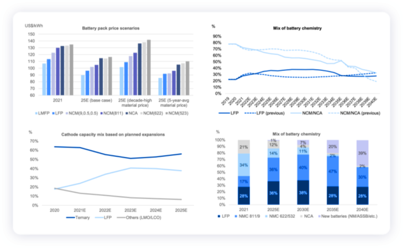 隨著電池回收市場(chǎng)向2030年邁進(jìn),磷酸鐵鋰的市場(chǎng)份額將在2030年后開始萎縮,其成本競(jìng)爭(zhēng)力因回收價(jià)值低于NCM而降低,讓位于NCM811/Ni90和其他新電池的擴(kuò)張。將續(xù)駛里程標(biāo)準(zhǔn)化以后,磷酸鐵鋰電池在2021年比三元電池便宜 10-20%,隨著中國(guó)逐步取消電動(dòng)汽車補(bǔ)貼,磷酸鐵鋰的成本優(yōu)勢(shì)在2022年以后變得越來越突出。