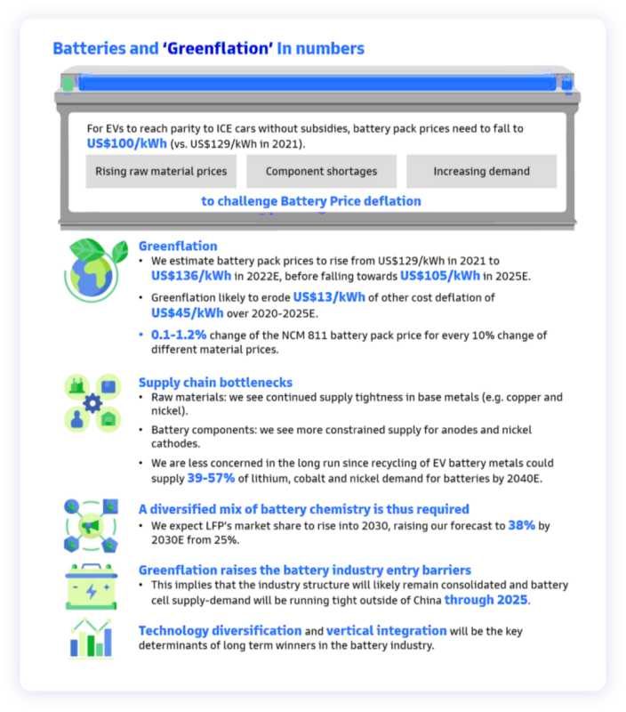 中國(guó)儲(chǔ)能網(wǎng)訊:高盛發(fā)布了《Global Batteries: The Greenflation Challenge 》和《Green Metals Battery Metals Watch: The end of the beginning 》闡述了一些觀點(diǎn),抽取一些內(nèi)容和大家分享下。