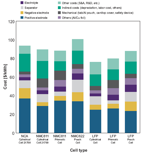 圖 2.4 多種鋰離子電池成本明細(xì)