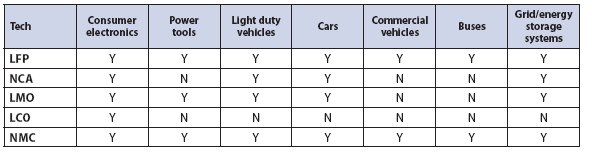 磷酸鐵鋰電池(LFP)在本世紀(jì)初首次實(shí)現(xiàn)商業(yè)化生產(chǎn)。其正極化學(xué)性質(zhì)最穩(wěn)定,不含資源有限的元素,可以充放電循環(huán)數(shù)萬次。使用納米級(jí)粉末的磷酸鐵鋰電池(LFP)石墨電池是目前功率密度最高的鋰離子電池之一。磷酸鐵鋰電池(LFP)具有商業(yè)化鋰離子電池最低的電池電壓(與石墨負(fù)極一起使用時(shí)約為3.5V),有助于其穩(wěn)定性。這一特性以及適中的比容量導(dǎo)致電池級(jí)比能量為90~140Wh/kg。較低的比能量限制了LFP電池正極在某些應(yīng)用中的使用(例如需要更長行駛里程的電動(dòng)汽車),但它們提供的功率、安全性、壽命和成本的結(jié)合導(dǎo)致了廣泛用于小型和大型商業(yè)應(yīng)用,從電動(dòng)工具到住宅和電網(wǎng)規(guī)模的儲(chǔ)能應(yīng)用。LFP電池正極也越來越多地用于乘用電動(dòng)汽車的電池中,而最大化行駛距離并不是其優(yōu)先考慮的問題。它們可能是目前固定儲(chǔ)能系統(tǒng)中低成本的鋰離子電池正極最具吸引力的選擇。