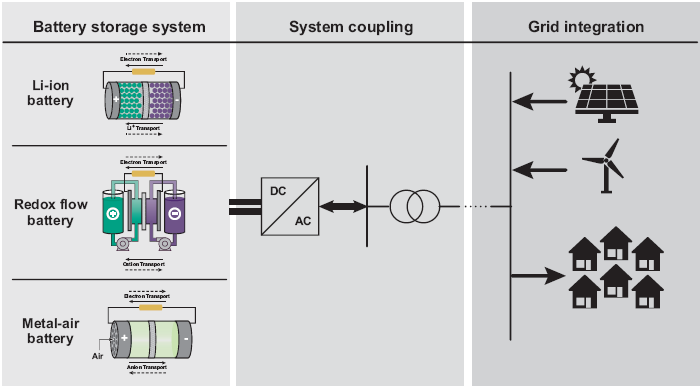 人們通常將電化學(xué)儲(chǔ)能設(shè)備稱為電池,其工作原理是通過氧化還原反應(yīng)將化學(xué)能和電能相互轉(zhuǎn)換。這些反應(yīng)發(fā)生在兩個(gè)不同的電極(正極和負(fù)極)上,它們通過外部電路連接并由離子導(dǎo)電介質(zhì)(即電解質(zhì))進(jìn)行物理分離。而電網(wǎng)中的電池儲(chǔ)能系統(tǒng)以及在這項(xiàng)研究中強(qiáng)調(diào)的電池技術(shù)幾乎無一例外是可充電電池,其氧化還原過程是可逆的。