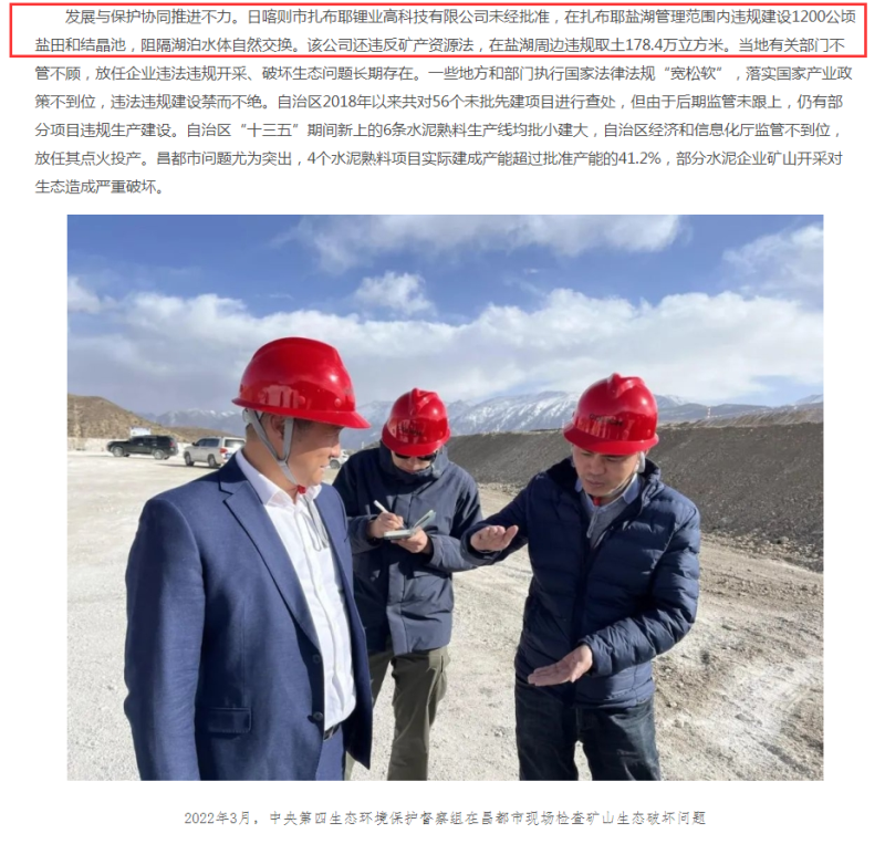 扎布耶鋰業(yè)因環(huán)境違法違規(guī)被點名