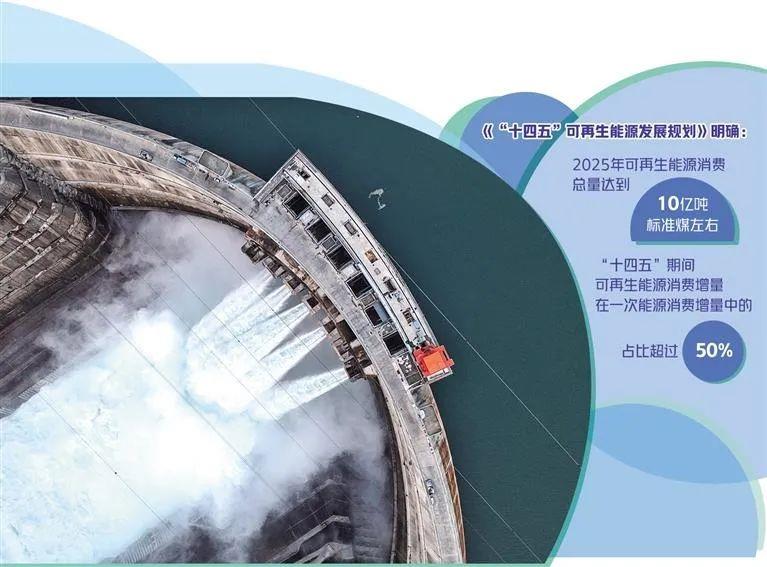 針對(duì)發(fā)電目標(biāo),《規(guī)劃》提出,2025年可再生能源年發(fā)電量達(dá)到3.3萬億千瓦時(shí)左右,“十四五”期間,可再生能源發(fā)電量增量在全社會(huì)用電量增量中的占比超過50%,風(fēng)電和太陽能發(fā)電量實(shí)現(xiàn)翻番。