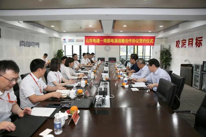 山東電建董事長(zhǎng)張玉雷、副總經(jīng)理胥登峰、副總工程師王彥,南都電源董事長(zhǎng)朱保義、總顧問(wèn)王岳能等相關(guān)領(lǐng)導(dǎo)見(jiàn)證簽約。