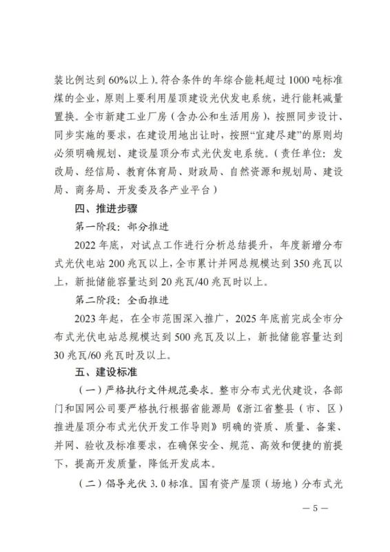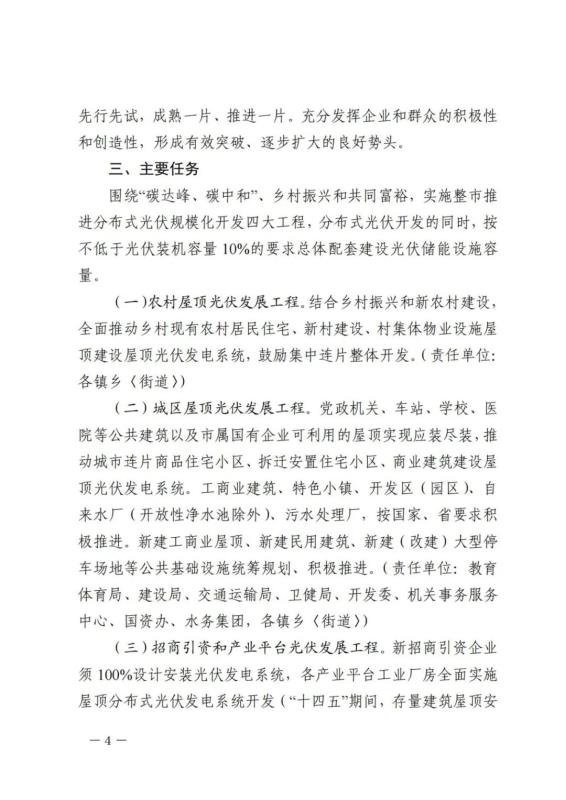通知明確,圍繞“碳達峰、碳中和”、鄉(xiāng)村振興和共同富裕,實施整市推進分布式光伏規(guī)?;_發(fā)四大工程,分布式光伏開發(fā)的同時,按不低于光伏裝機容量10%的要求總體配套建設(shè)光伏儲能設(shè)施容量。