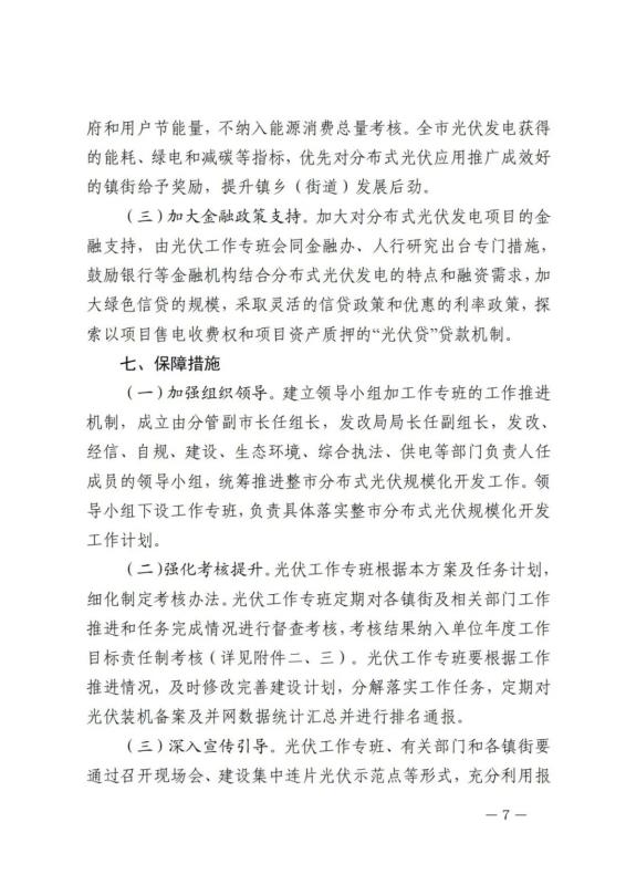加大節(jié)能政策調(diào)節(jié)。對利用屋頂建設(shè)光伏發(fā)電系統(tǒng)的企業(yè),光伏系統(tǒng)所發(fā)電量可以在其年度用能指標(biāo)中予以抵扣。光伏發(fā)電項目自發(fā)自用電量不計入階梯電價適用范圍,計入地方政府和用戶節(jié)能量,不納入能源消費總量考核。全市光伏發(fā)電獲得的能耗、綠電和減碳等指標(biāo),優(yōu)先對分布式光伏應(yīng)用推廣成效好的鎮(zhèn)街給予獎勵,提升鎮(zhèn)鄉(xiāng)(街道)發(fā)展后勁。
