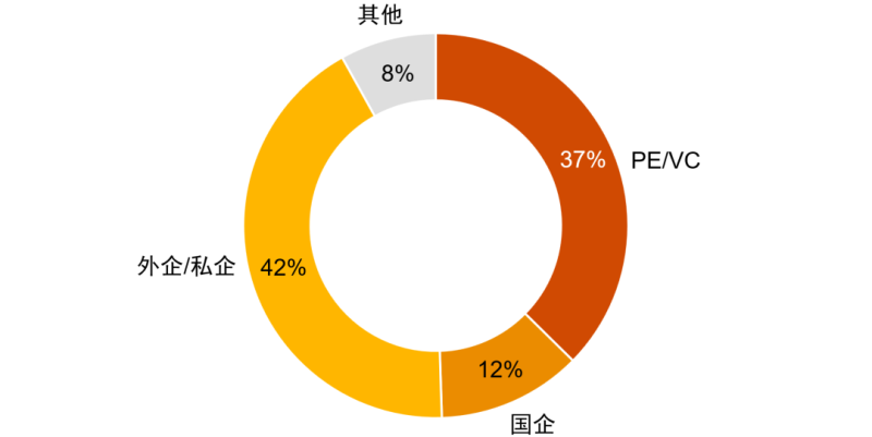 財務(wù)投資人(PE/VC):PE/VC是動力電池產(chǎn)業(yè)鏈投資的重要參與者,對動力電池產(chǎn)業(yè)鏈各環(huán)節(jié)的投資皆表現(xiàn)出濃厚的興趣,占比達到37%。