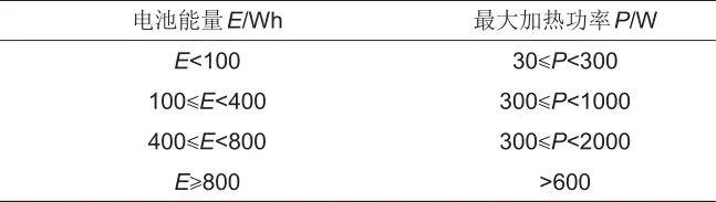 表2 GB/T 36276熱失控試驗(yàn)加熱功率選擇