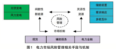 在以上案例中可以發(fā)現(xiàn),在間歇性可再生能源大規(guī)模接入和極端天氣頻發(fā)的背景下,電力市場的風(fēng)險主要來源于系統(tǒng)的不平衡電力以及相應(yīng)的波動電價。為了保障能源綠色低碳轉(zhuǎn)型背景下電力市場的平穩(wěn)運行,各電力市場主體需要充分利用儲能裝置、需求響應(yīng)等靈活性資源來管理電力不平衡風(fēng)險,并積極探索開發(fā)電力期貨、電力期權(quán)等電力金融產(chǎn)品以管理電價波動風(fēng)險(見圖1)。