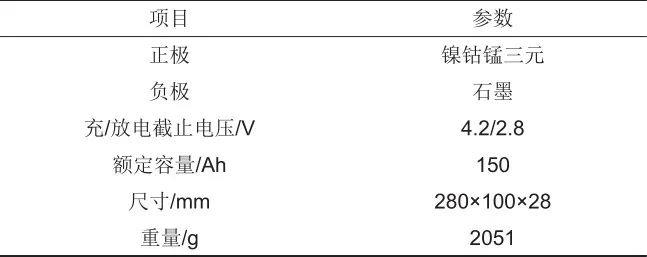 本文選擇了一款商用三元/石墨體系鋰離子電池作為研究對象,其主要技術(shù)參數(shù)如表1所示。