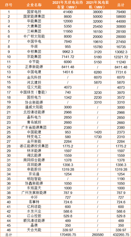 中核日前曾表示拿到了超3GW的風光大基地,儲備項目達10GW,預計“十四五”新增規(guī)模達5GW/年。華電集團則在“十四五”期間規(guī)劃新增75GW新能源,著力推進結構調(diào)整,全面加快綠色轉(zhuǎn)型發(fā)展。大唐集團作為五大電力“豪門”之一,盡管2021年增速放緩,但其收獲卻頗豐。去年,大唐集團取得51個整縣光伏試點縣區(qū)、總?cè)萘考s12GW,風光大基地共9.13GW新能源項目被納入。