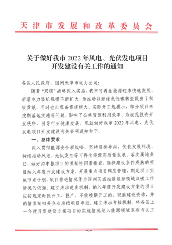 中國(guó)儲(chǔ)能網(wǎng)訊:6月2日,天津市印發(fā)《關(guān)于做好我市2022年風(fēng)電、光伏發(fā)電項(xiàng)目開(kāi)發(fā)建設(shè)有關(guān)工作》的通知。