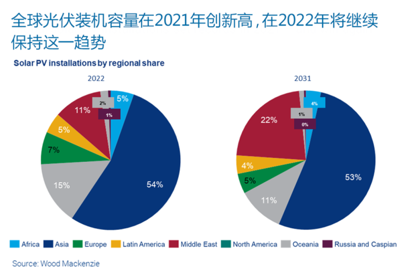 預計2022年到2031年,全球光伏裝機容量的年均增長率將達到8%