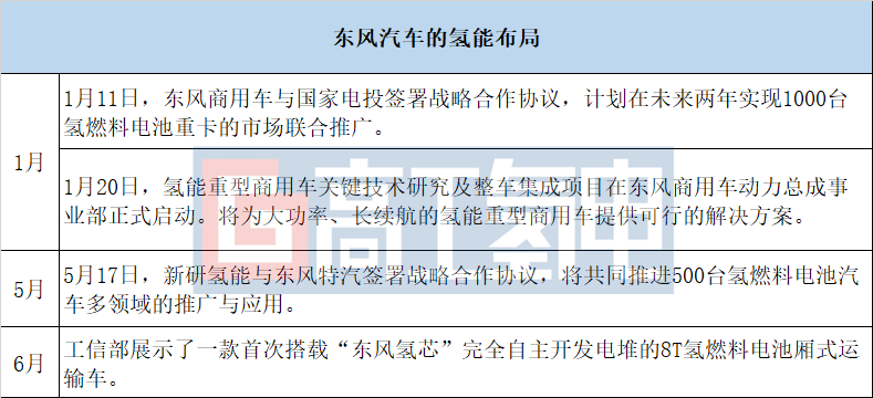 東風(fēng)汽車(chē)致力于打造氫能源汽車(chē)整條研發(fā)鏈,堅(jiān)持自主開(kāi)發(fā),從基礎(chǔ)材料到核心部件、雙極板、膜電極、電堆、系統(tǒng)集成,以及整車(chē)應(yīng)用,建立了先進(jìn)的實(shí)驗(yàn)室和中試的生產(chǎn)能力。今年上半年布局事件如下:
