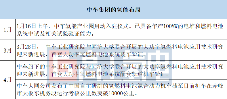 中國(guó)中車(chē)集團(tuán)是中央大型國(guó)有企業(yè),業(yè)務(wù)范圍涵蓋化工機(jī)械制造、輪胎與橡膠制品制造、汽車(chē)及零部件制造等領(lǐng)域,主要產(chǎn)品有大客車(chē)、越野車(chē)、公交車(chē)、快餐車(chē)、工程搶修車(chē)和電瓶叉車(chē)等。近年來(lái),中車(chē)集團(tuán)不斷加快氫能產(chǎn)業(yè)鏈發(fā)展速度和力度,氫燃料電池汽車(chē)業(yè)務(wù)、氫能源有軌電車(chē)業(yè)務(wù)都表現(xiàn)不俗。今年上半年布局事件如下: