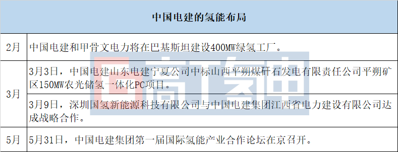 中國(guó)電建作為全球最大的電力設(shè)計(jì)、承包商,致力于集合氫能產(chǎn)業(yè)鏈上下游企業(yè),整合國(guó)際氫能優(yōu)質(zhì)資源,已在全球多個(gè)國(guó)家積極推進(jìn)多個(gè)綠氫項(xiàng)目,取得了良好成績(jī)。今年上半年布局事件如下: