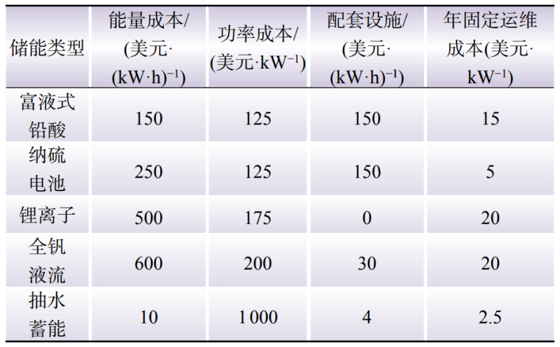 Table 8 Cost per unit of large-capacity energy storage systems