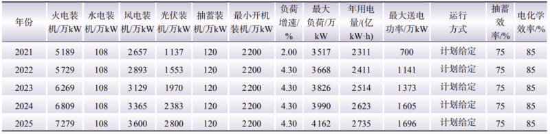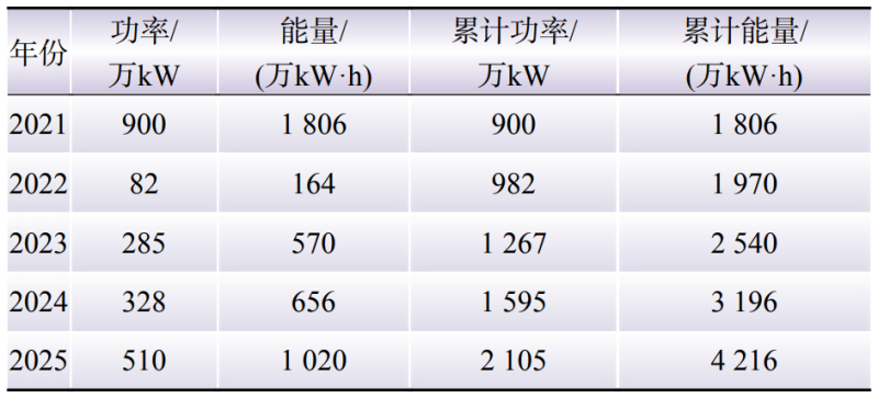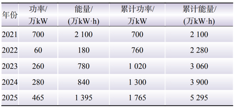 根據(jù)上述方法,開展某省級(jí)電力系統(tǒng)配置儲(chǔ)能分析計(jì)算。根據(jù)2021—2025年的邊界條件,考慮該系統(tǒng)中需求響應(yīng)占比小于1%,以負(fù)荷100%滿足和新能源利用率達(dá)到95%為目標(biāo),開展“十四五”期間逐年配置儲(chǔ)能的分析計(jì)算。