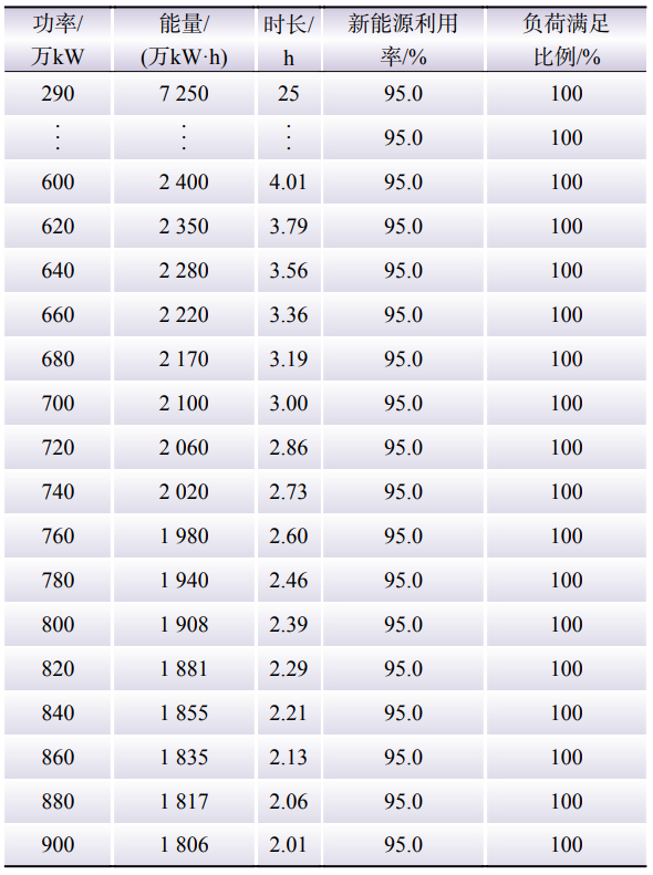 表4 不同功率下滿足新能源利用率和負(fù)荷平衡要求的儲(chǔ)能能量計(jì)算結(jié)果