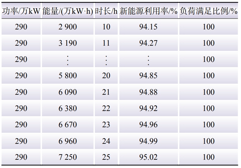 Table 4 Calculation results of the energy capacity of energy storage satisfying the requirements of the utilization rate of renewable energy and load balance under different power