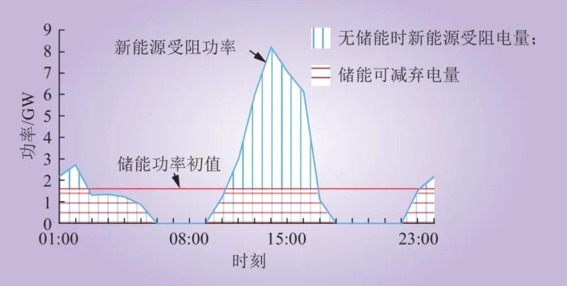 同時(shí)存在新能源受阻和負(fù)荷限電時(shí),應(yīng)比較新能源受阻功率和負(fù)荷限電功率,選擇同時(shí)滿足二者要求的功率作為儲(chǔ)能功率初值。