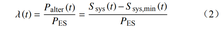 式中:Palter(t) 為儲(chǔ)能等效置換常規(guī)機(jī)組的容量;Ssys(t) 為時(shí)刻t系統(tǒng)常規(guī)電源的開機(jī)容量;Ssys,min(t) 為時(shí)刻t下,為保障安全穩(wěn)定和供熱需求,系統(tǒng)需要的最小開機(jī)容量;PES 為儲(chǔ)能的額定功率。