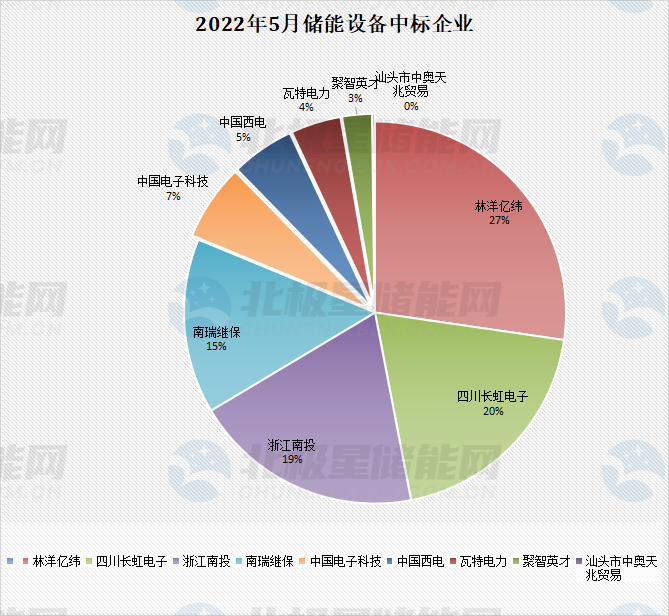 在儲能系統(tǒng)招標中,共有9家企業(yè)成功拿下項目,其中林洋億緯在5月奪得的項目規(guī)模最大,中標金額超2億。