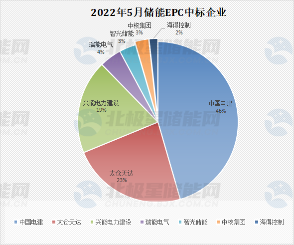 在儲能EPC中標企業(yè)中,共有7家企業(yè)中標,其中中國電建中標次數最多,參與6次投標、中標了3次,且投標總價最高,超9億,占比46%。