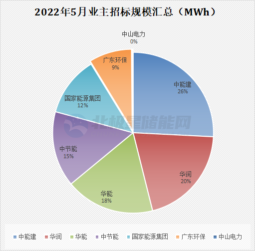 從招標企業(yè)來看,招標單位大多來自于華能、南方電網、京能、中節(jié)能、國家能源集團等央企,其中中國能建招標項目涉及規(guī)模最大,儲能規(guī)模達90MW/180MWh。華能招標次數最多,高達12次,占比23%。