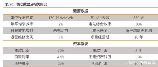 初始投資成本:以磷酸鐵鋰為例,從近兩年用戶側(cè)項目的招標情況來看,EPC 單位投 資成本大多在 150-200 萬元/MWh 之間。我們假設工程單位投資成本為 170 萬元 /MWh。