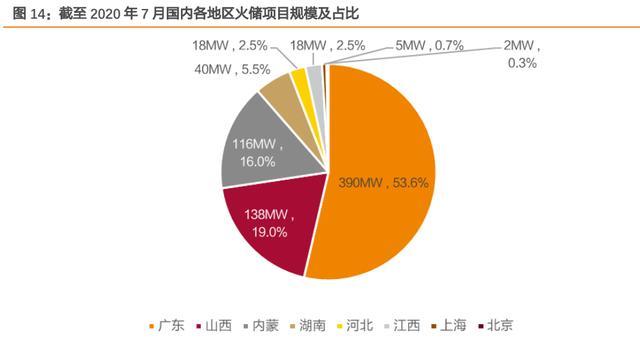 廣東等區(qū)域受補償政策影響,初期項目收益水平較為顯著,發(fā)展優(yōu)勢明顯。在性能需求疊 加補償政策影響下,火儲聯(lián)合調(diào)頻市場快速發(fā)展。根據(jù)儲能與電力市場統(tǒng)計,截至 2020 年 7 月,國內(nèi)火儲聯(lián)合調(diào)頻項目達 58 個(含投運、在建、中標項目),總規(guī)模達 727MW, 且項目地集中于廣東、內(nèi)蒙、山西等地。