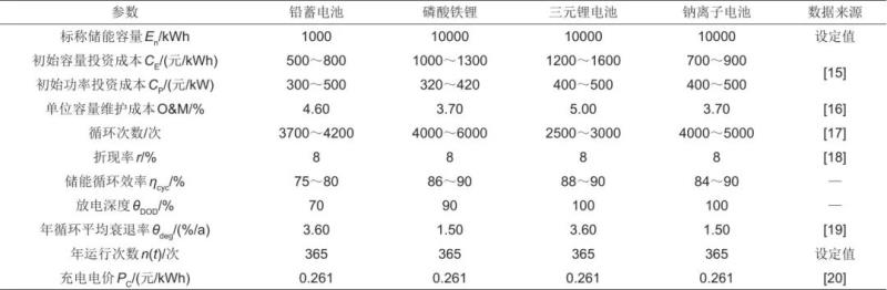 表2 電化學(xué)儲(chǔ)能系統(tǒng)參數(shù)