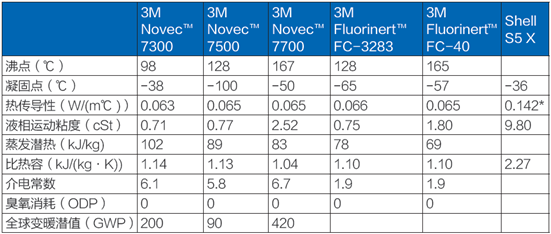 目前,3M公司是全球生產(chǎn)浸沒式電子氟化液的領(lǐng)先企業(yè),其生產(chǎn)的Fluorinert?電子氟化液與Novec?電子工程液均有不同型號可以用于雙相浸沒式液冷。兩者均有優(yōu)良的熱穩(wěn)定性和化學穩(wěn)定性、無味、不可燃、非油基、低毒性、無腐蝕性,可為數(shù)據(jù)中心提供可信賴且可持續(xù)的解決方案。