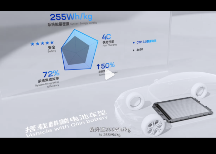 (3)麒麟電池的系統(tǒng)能量密度高達(dá)255Wh/kg,比4680電池更高
